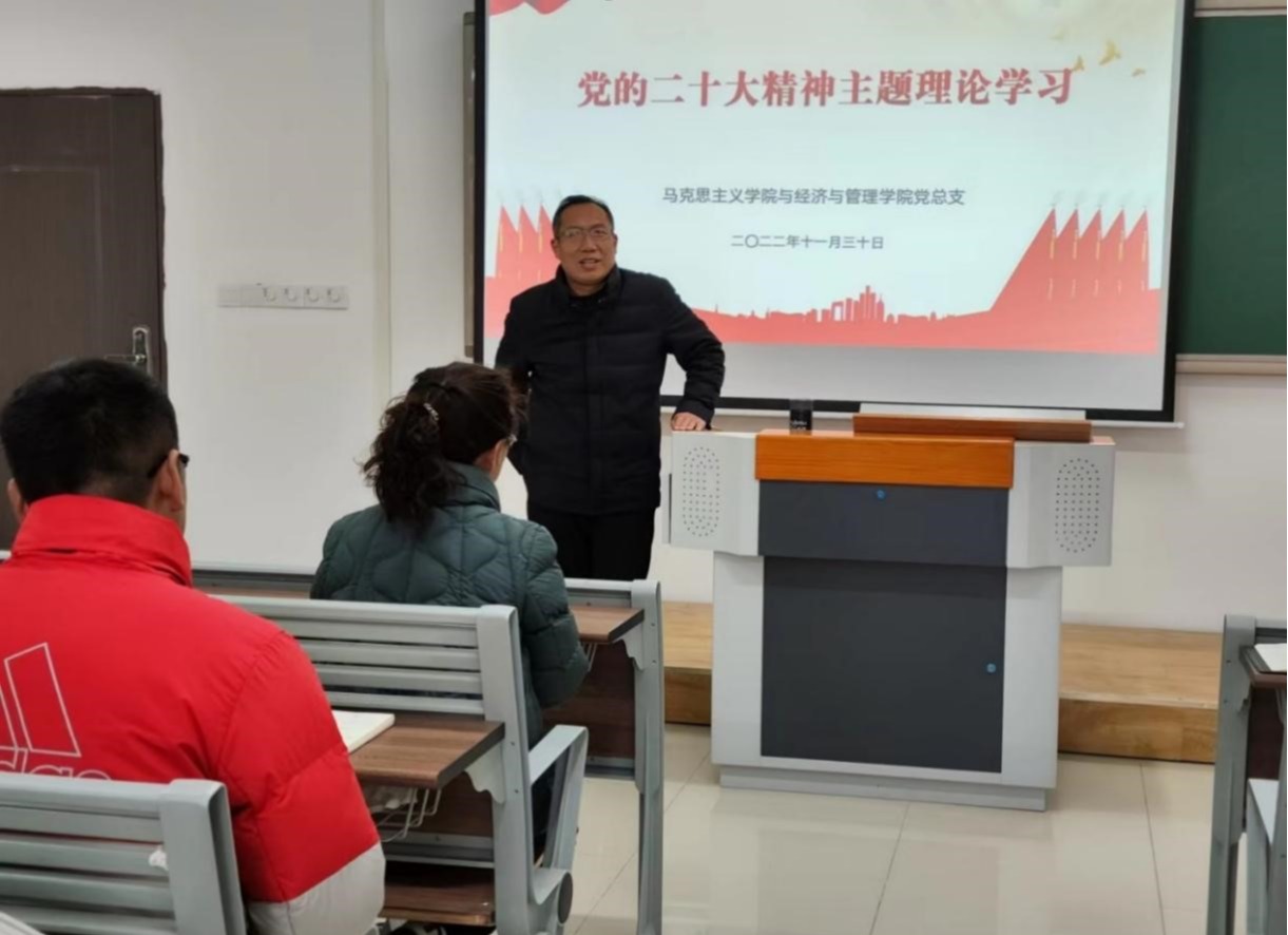 为深入学习宣传贯彻党的二十大精神,切实把思想和行动统一到党的二十大精神上来,引导全体党员干部、教师积极响应时代呼唤,紧密团结在以习近平同志为核心的党中央周围,深刻感悟思想伟力,领悟大会精神。11月30日下午,beat365中国官网与经济管理学院党总支组织开展了关于党的二十大精神主题学习活动,由党总支书记吴玲以“做新时代绚丽华章的谱写者”为主题,在二教421为全体教师上了一堂生动且深入的专题党课。
