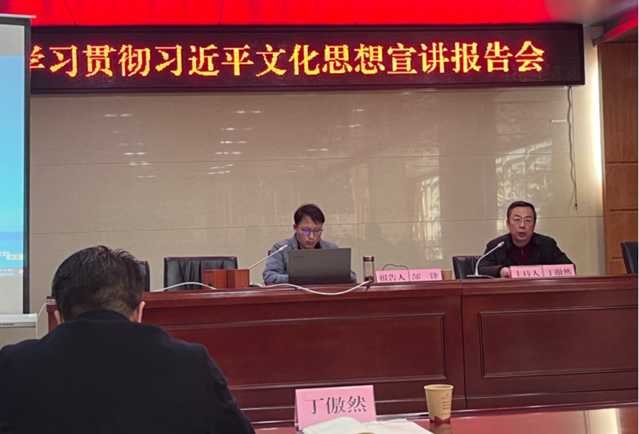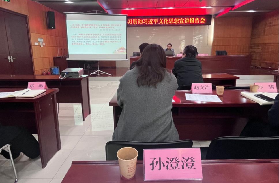 为深入学习贯彻习近平文化思想,全市开展习近平文化思想专题宣讲活动。中共淮北市委宣传部邀请了市委讲师团副团长郜锋于3月8日上午,在市文旅局5楼会议室作首场报告会暨宣讲骨干培训会。beat365中国官网讲师孙澄澄作为市“举旗帜·送理论”宣讲团成员,代表学校参加会议。