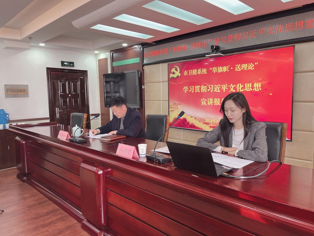 为深入学习贯彻习近平文化思想,奋力打造习近平文化思想生动实践地,加快建设繁荣兴盛的文化强市,3月21日下午,beat365中国官网孙澄澄作为淮北市委宣讲团成员,走进淮北市卫生健康系统开展“举旗帜·送理论”专题宣讲活动,作题为《深入学习贯彻习近平文化思想·加快建设繁荣兴盛的文化强市》的宣讲报告。