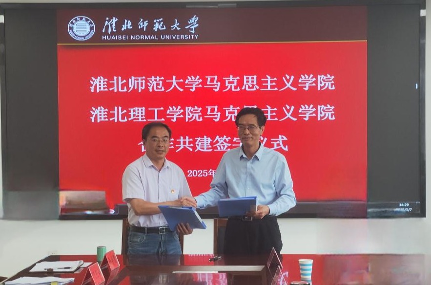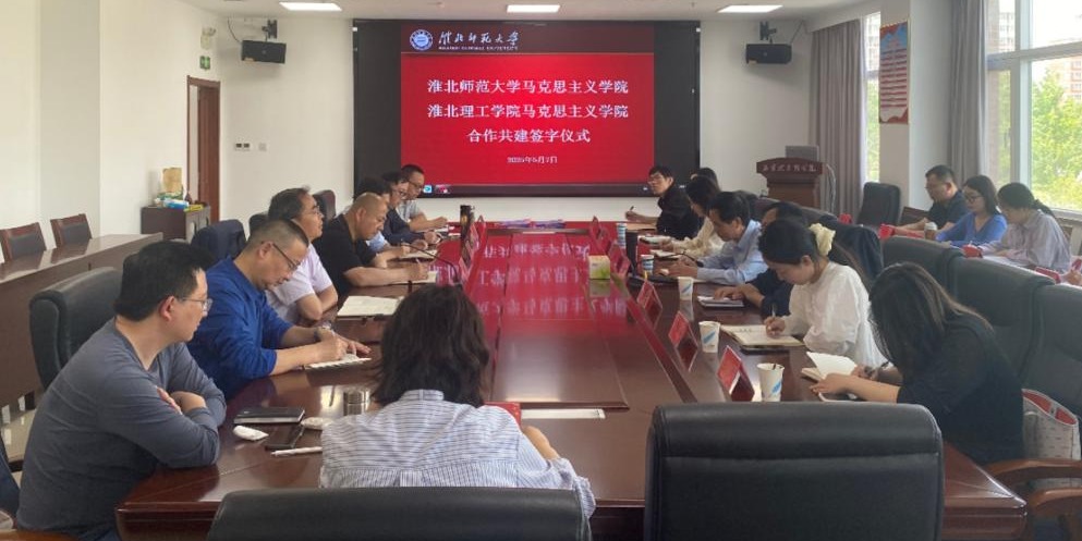 签约仪式伊始,淮北师范大学马院马元斌致辞中强调,思想政治理论课是落实立德树人根本任务的关键课程,结对共建对两院资源共享,优势互补,协力攻关,共同提高有着重要意义。石振宝也表示,两校马院在学科建设、教学科研等方面有着各自的积淀和经验。双方通过双向沟通、相互学习、实现双赢,共同推进思政课建设。