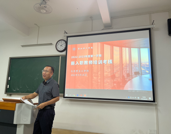 为更好更快推动新任教师课堂教学质量的提高,全面提升新教师教学能力素养,站稳讲台、上好第一课,按照学校的要求,beat365中国官网于8月26日下午2点30分在一教215教室组织开展了对新入职教师的培训考核活动。beat365中国官网全体老教师作为考核专家、入职新教师作为考核对象参与了本次入职培训的考核活动。本次活动有刘奔前副教授、陈志操老师主持。